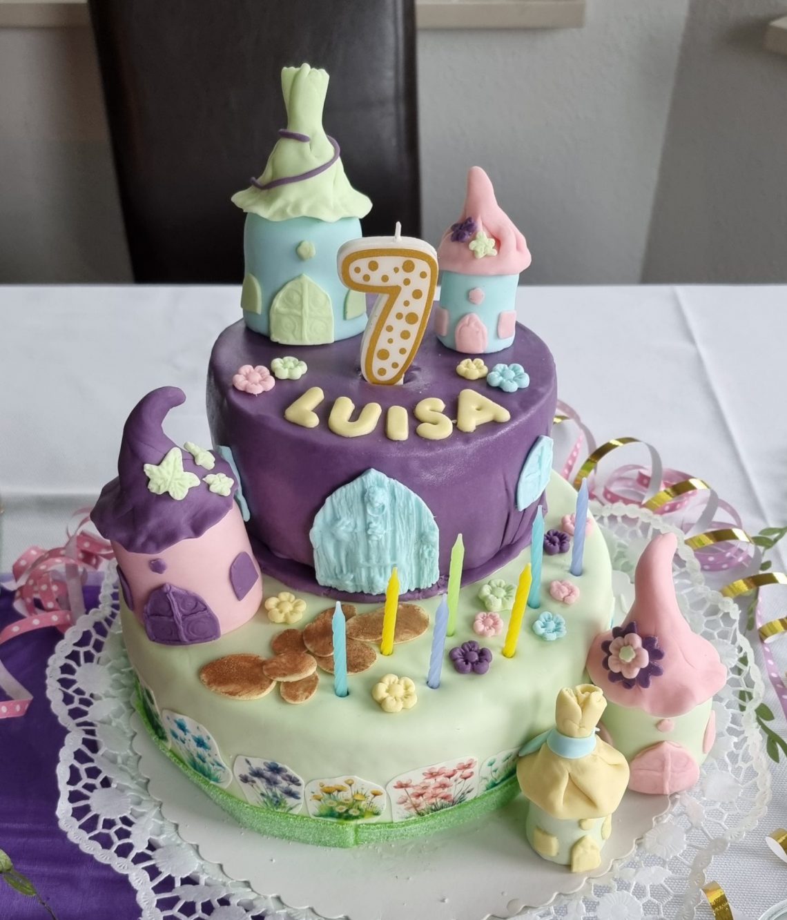2023 In diesem Jahr war es etwas komplizierter, ein Thema für den 7. Geburtstag zu finden. Ganz lange war klar, dass die Lieblingsfolge der drei Fragezeichen meiner Kleinsten: „Das Auge des Drachen“ Thema werden musste. Das war auch die einzige Folge, die sie mit ihren 6 Jahren schon hören durfte. So wurde sie auch jeden Tag mehrmals gehört und ich konnte sie auch schon auswendig. Jetzt gab es aber keinen einzigen ihrer Geburtstagsgäste, der die drei Fragezeichen schon kannte und irgendetwas damit anfangen konnte. Also kamen wir auf die Idee, in die Fantasiewelt der 6jährigen Hauptfigur (neben den drei Hobbydetektiven) dieser Folge einzutauchen und als Thema Feen, Elfen, Trolle, Drachen…