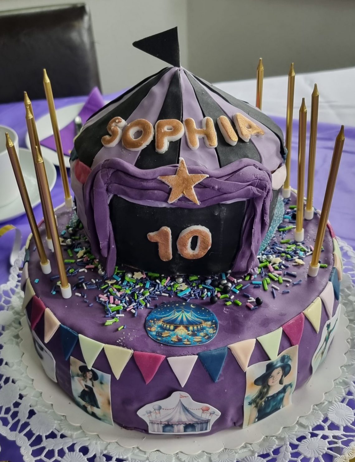 2024 Da meine mittlere Tochter quasi schon monatelang mit den verschiedensten Freundinnen beschäftigt war, irgendwelche Choreographien auszuarbeiten und vorzuführen, lag das Thema Zirkus/Show/Gala irgendwie nahe. Allerdings waren die typischen Zirkusfarben rot und weiß nicht so ihr Ding, d.h. es sollte doch irgendwie mehr in Richtung Varieté gehen, wo dann auch eher die Farben lila, schwarz und gold passend sind. Schnell war auch klar, dass es eine wie auch immer geartete Aufführung /Show geben sollte, denn ohne Publikum macht eine Show auch nicht so viel Sinn. Da die Eltern ja eh zum Abholen der Kinder kommen mussten, hatten wir auch gleich unser Publikum… Mit der Einladung wollten wie die Kinder schon…