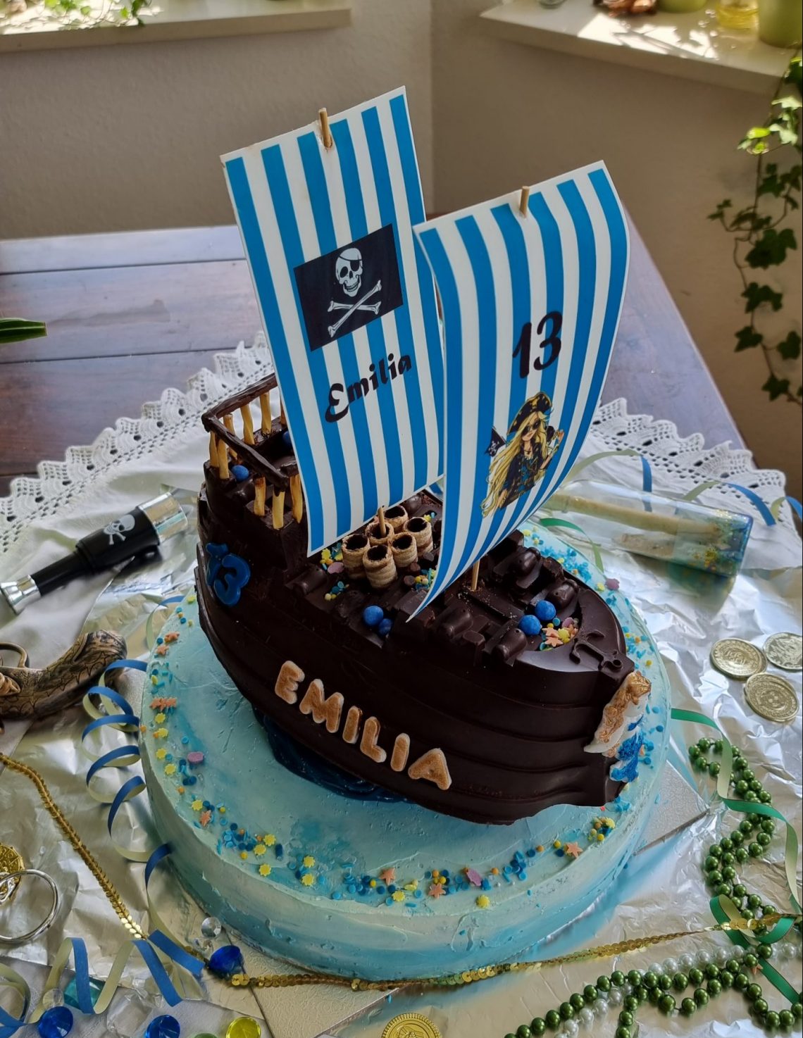 2024 Eigentlich wollten wir ja schon im letzten Jahr unsere große Piratenparty machen, aber da war unser Garten irgendwie noch komplett im Umbau und dann haben wir spontan auf dieses Jahr verschoben. Umso schöner war dann, dass wir zufällig im Urlaub in der Nähe von Lille noch ein ganz außergewöhnliches Piratenrestaurant mit einer wirklich tollen Show entdeckt haben: „Pirates Paradise“. Wir waren also voll im Thema… Für die Einladung haben wir Flaschen besorgt und in eine Schüssel mit Wasser verschiedene Nagellacke getropft und dann mit der Flasche aufgenommen, etwas Glitzer dazu bevor der Lack trocken ist. Dann etwas Vogelsand und ein paar Minimuscheln in die Flasche. Den Ausgedruckten Text haben…
