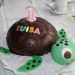 Bei Geburtstagstorten gehe ich gerne auf Nummer sicher, hier ein lockerer Bisquitboden mit Schokosahne gefüllt und überzogen. Alle Dekoelemente sind aus buntem Fondant ausgestochen und mit bunten Streusseln dekoriert.