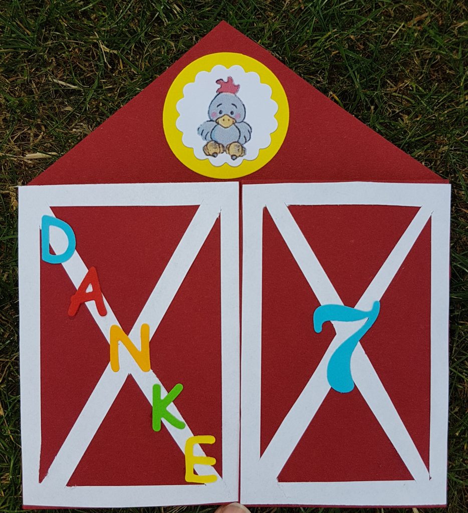 Diese Danksagungskarte kann man wie ein Tor öffnen. Meist habe ich dann für die Einladungen so viele tolle Ideen bekommen, dass ich die ein oder andere dann gerne für eine Danksagungskarte umsetze. So kann man seine Bastelprojekte unter die Leute bringen und erfreut vielleicht noch den ein oder anderen Verwandten damit.
