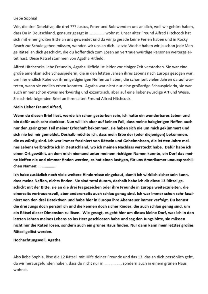 Mit dem Puzzle kam dann eine weitere  Nachricht  mit einem Hinweis auf eine alte Freundin zum Vorschein und deren Telefonnummer, wo dann auch endlich die Lupe ihre Anwendung fand.  Für die Kinder ist es immer aufregend eine (fremde) Telefonnummer anzurufen und ein geheimes Paßwort zu nennen. Oma und Opa freuen sich schon immer auf den Anruf der Kinder und geben dann natürlich gerne alle notwendigen Informationen preis.  In unserem Fall : FOLGT DEN FRAGEZEICHEN