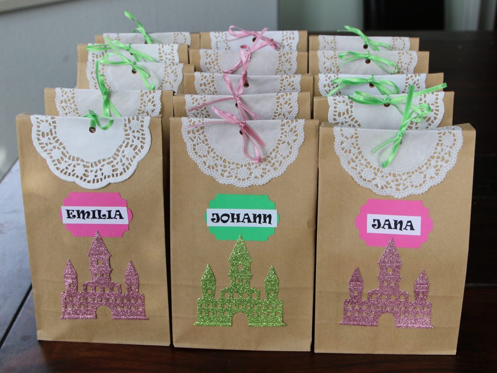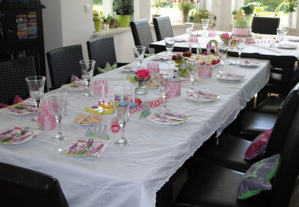 Als Namensschilder und Deko habe ich kleine glitzernde Papierkrönchen (für die Mädchen rund zum Aufsetzten und für die Jungs dezent in silber) mit Namen beklebt. Es gab natürlich auch Kekse in Krönchenform und frisches Obst zum Naschen.