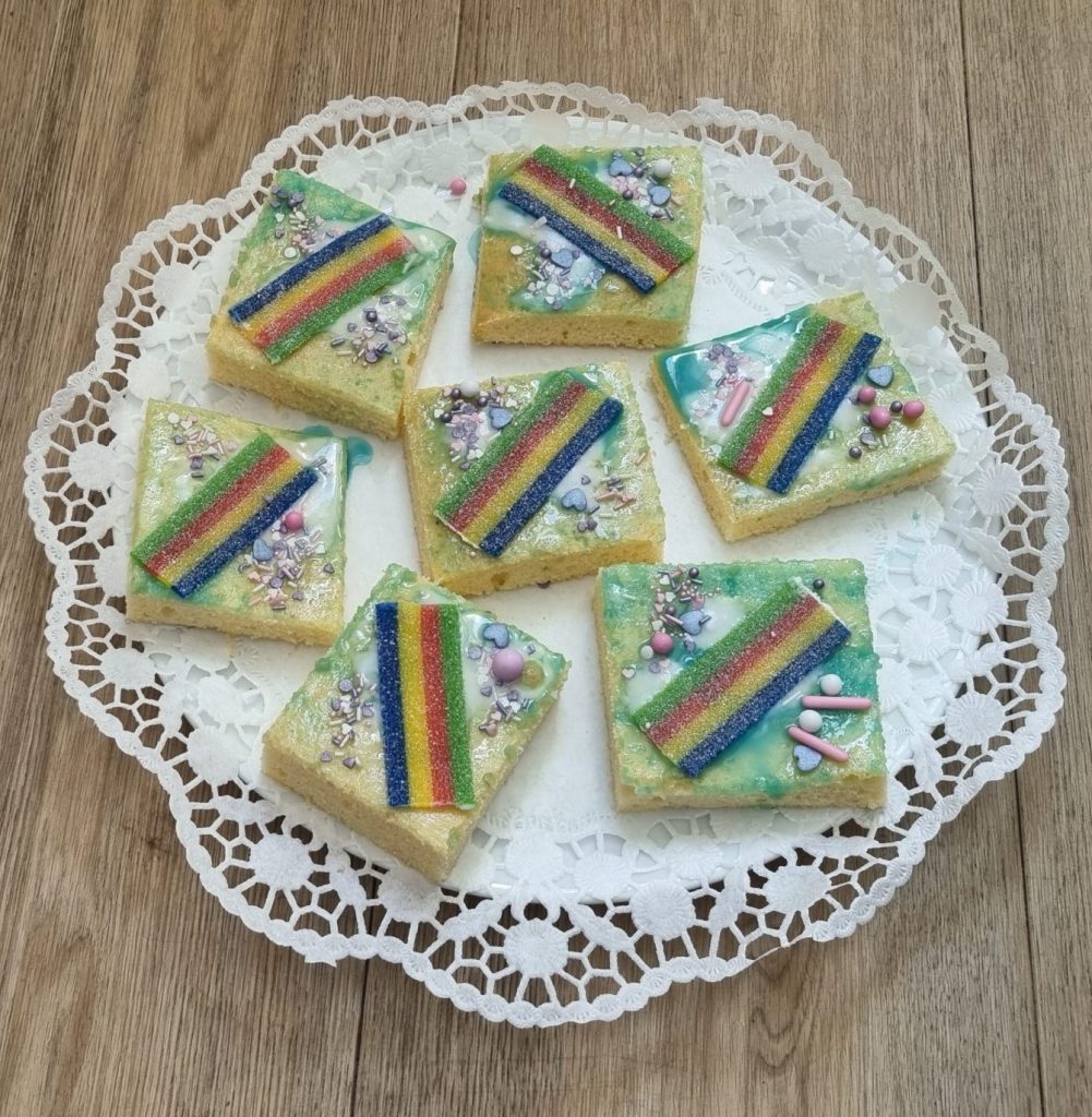 Kleine Regenbögen aus Smarties. Es darf auch ruhig einfach sein, Hauptsache es schmeckt.