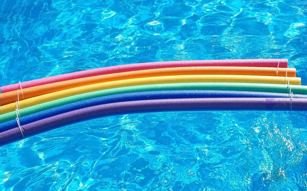 Auch ein wenig Pooldeko durfte nicht fehlen, wir haben die Schwimmnudeln mit Kabelbindern aneinander fixiert. Zum Glück war das Wetter gut und die Kinder konnten auch ins Wasser.