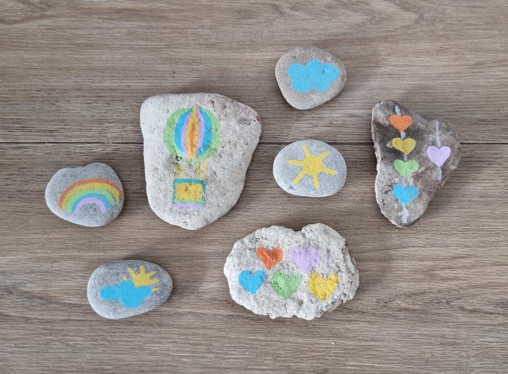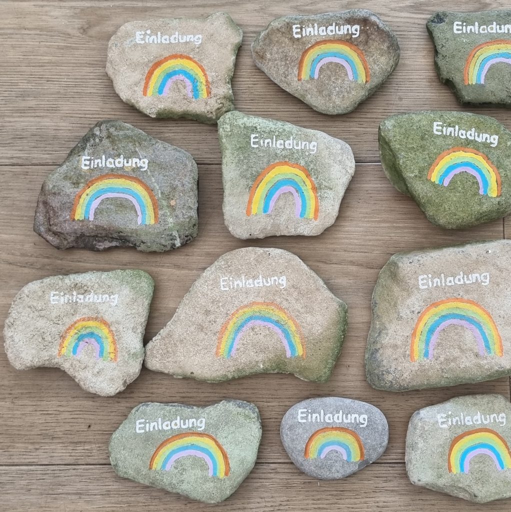 Für die Tischdeko noch ein paar fix bemalte Steine, natürlich passend zum Motto, hier eine kleine Auswahl.