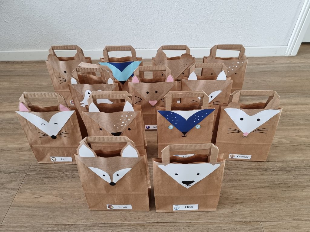 Die Kinder durften an ihrem Geburtstag in der Schule abgepackte Süßigkeiten verschenken. Sonst habe ich ja immer für die ganze Klasse Muffins gemacht, aber aus bekannten Gründen in diesem Jahr lieber alles abgepackt…
