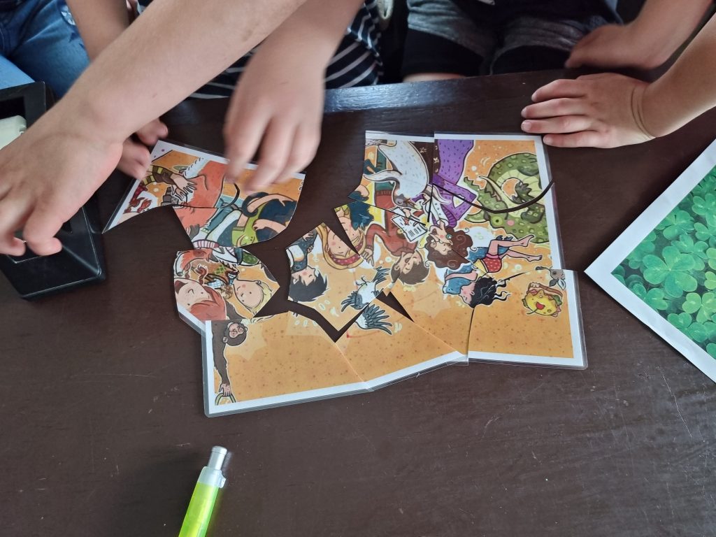 Hier mußten Puzzelteile (im Garten) gefunden und zusammengesetzt werden, auf der Rückseite war dann der gesuchte Buchstabe. Dann hatten wir noch eine Aufgabe, wo die KInder die Tiere zuordnen mußten – da wir so begeistert von dieser Buchreihe sind, hatten wir schon im Vorfeld allen Familien, deren Kinder die Bücher noch nicht kannten, die Bücher oder Hörbücher ausgeliehen. In Zeiten von Corona und Quarantäne haben sich wirklich alle total gefreut und die Bücher sind für Mädchen und Jungen ja auch gleichermaßen gut geeignet.