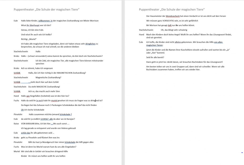 Wir haben versucht, die Charaktere aus den Büchern ein wenig zu übernehmen, so dass die Kinder, die fast alle echte Experten waren, was den Inhalt der Bücher betrifft, die Tiere direkt wiedererkennen konnten. Das kam super an. Auch das Miteinbeziehen der mitgebrachten Lieblingskuscheltiere war eine gute Idee.